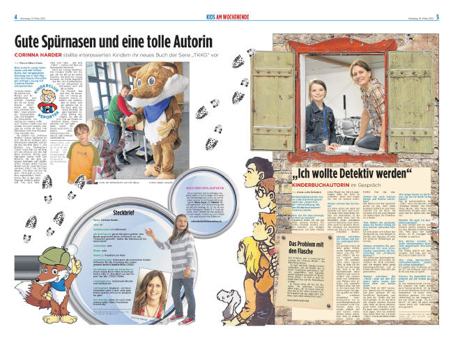 Es gibt mal wieder was zu Schmökern. Am 31. März erschien anlässlich einer Lesung von Mrs. X alias Corinna Harder diese schöne Seite in »Kids am Wochenende« in der Fuldaer Zeitung. |